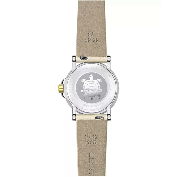 Женские часы Certina DS Caimano Lady C017.210.56.117.00 выполнены в корпусе из титана диаметром 27 мм и толщиной около 7 мм. Модель входит в коллекцию DS (Double Security) — фирменной технологической концепции Certina, предусматривающей усиленные уплотнения, заднюю крышку и заводную головку, а также сапфировое стекло.