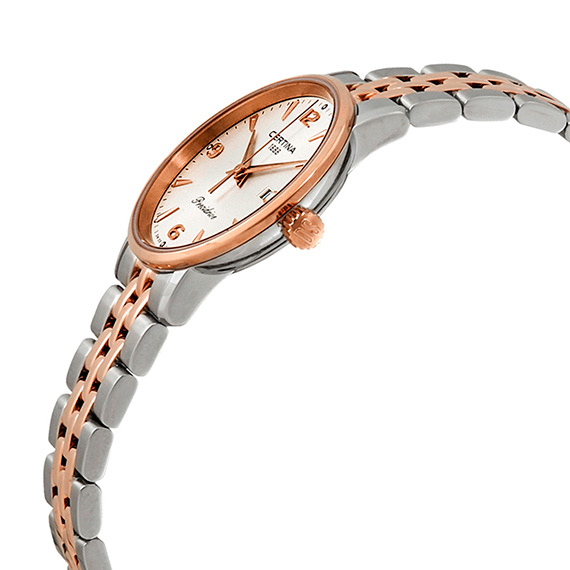 Женские часы Certina DS Caimano Lady C035.210.22.037.01 выполнены в корпусе из нержавеющей стали с частичным PVD-покрытием диаметром 28 мм и толщиной около 7 мм.Модель входит в коллекцию DS (Double Security) — фирменной конструкции Certina, включающей сапфировое стекло с антибликовым покрытием, специальные уплотнения на заводной головке и задней крышке, а также усиленные элементы корпуса для устойчивости к ударам и влаге.